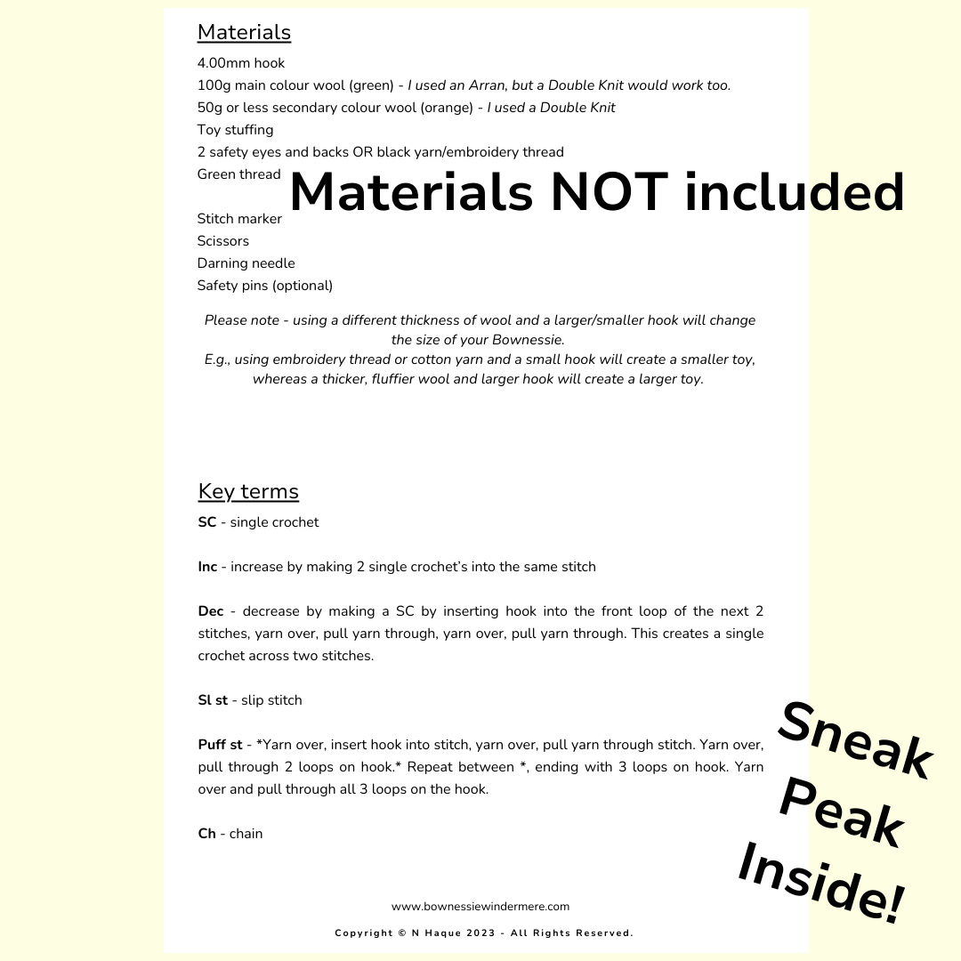 This pattern includes detailed instructions and step-by-step photos, leaving only the materials for you to provide, allowing you to create your own Bownessie in the colour and yarn type of your choice.
